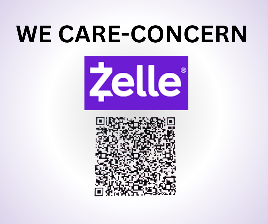Using Zelle to make a donation to our organization is quick and easy! Simply Zelle your donation to wcc@wecare-concern.org, click the donate using Zelle button or scan the QR code below.